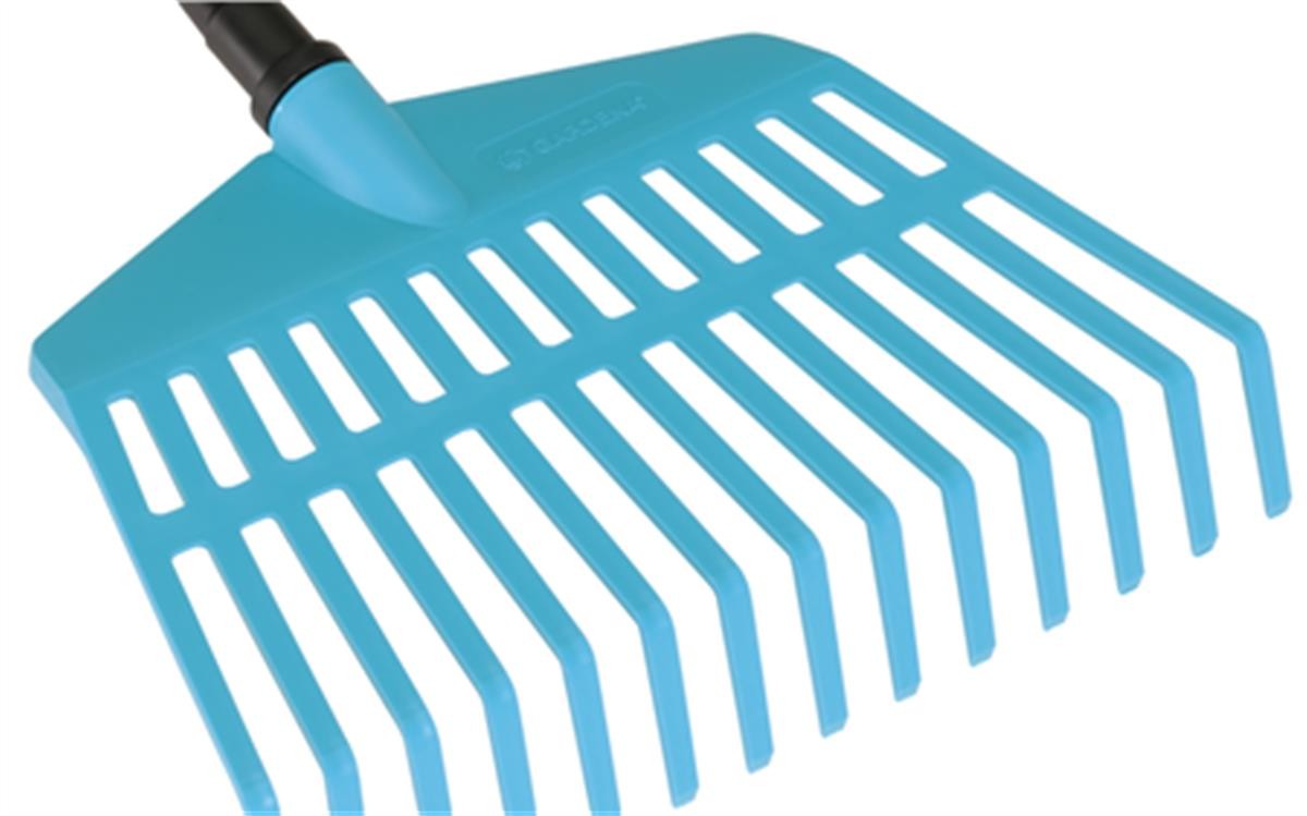 GARDENA combisystem-gazonhark is uitermate geschikt voor het bijeenharken van blad, grasresten en ander tuinafval op kleine oppervlakken. De tanden van hoogwaardige kunststof, die zijn opgesteld over een werkbreedte van 27 cm, garanderen een eenvoudig en praktisch gebruik, waarbij het gazon wordt ontzien. De gazonhark is geschikt voor alle stelen van het GARDENA combisystem, waarbij GARDENA een steellengte van 130 cm adviseert, afhankelijk van uw lichaamslengte. De garantieperiode is 25 jaar.