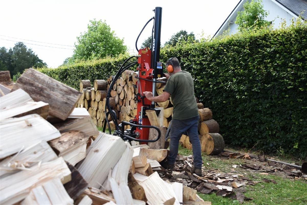GTM: Houtkliever van heeft een drukkracht van 22 ton en verwerkt stammen tot een lengte van 110 cm en een diameter van 45 cm. De sterke Loncin G200F motor heeft een cilinderinhoud van 196 cc en levert 6,5 pk.