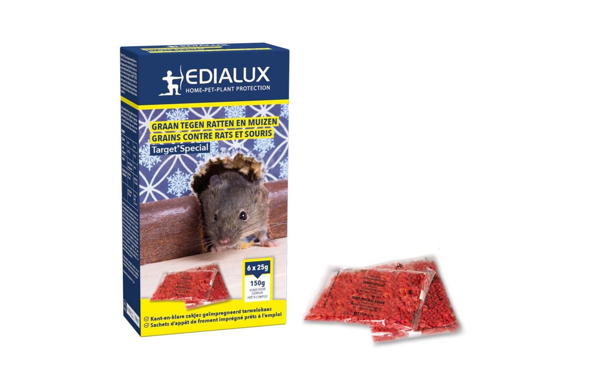 Edialux Sorkil-G Garden is een lokaas met difenacoum en graantjes, dat muizen en ratten sterk aantrekt. De voorgedoseerde zakjes garanderen een langdurige en efficiënte werking, zelfs in vochtige ruimtes. Eén enkele opname van het gif is voldoende voor het doden van moeilijk te bestrijden muizen en ratten.