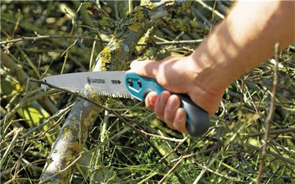 GARDENA snoeizaag 300 P heeft een totale lengte van 400mm, en maakt deel uit van het nieuw GARDENA assortiment snoeizagen. Voor gladde, trekkende snede door vers en droog hout. Impulsgeharde, messcherpe 3-zijdig geslepen tanden voor voor moeiteloos zagen en een nette, zuivere snit. Met speciale coating beschermd tegen corrosie en roest. Anti-slip om veilig de zaag terug te trekken dankzij zachte componenten en bijkomende stop aan de handgreep. Met ophangoog en zaagbladbescherming. Zaagbladlengte: 300 mm. 25 jaar garantie. 4-kleuren infokaart.
