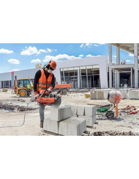 De slijpschijf (max. 350 mm / standaard niet meegeleverd) kan zowel links als rechts gemonteerd worden.